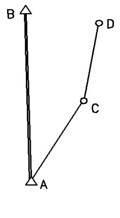 1个已知点A坐标和已知方向AB(或已知A、B点的坐标)及2个未知点C、D点组成的支导线(如图1所示)。